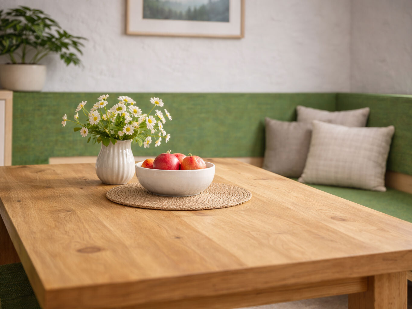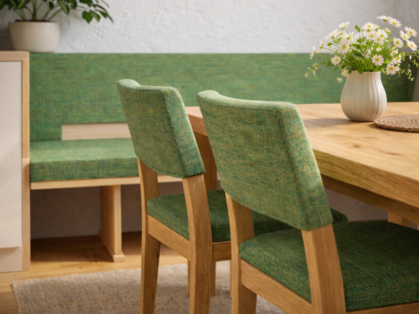 Eiche zählt zu den robustesten Holzarten überhaupt – und ist damit wie gemacht für eine Eckbank, die täglich genutzt wird. Ob im Familienalltag oder beim gemütlichen Beisammensein mit Gästen: Eine Eckbank aus massiver Eiche bleibt formstabil, zeigt kaum Gebrauchsspuren und bringt durch ihre natürliche Maserung Wärme und Charakter in den Raum. Dank hoher Festigkeit und ihrer Widerstandskraft gegenüber äußeren Einflüssen ist sie ein echtes Statement für Nachhaltigkeit – und für bleibende Werte.