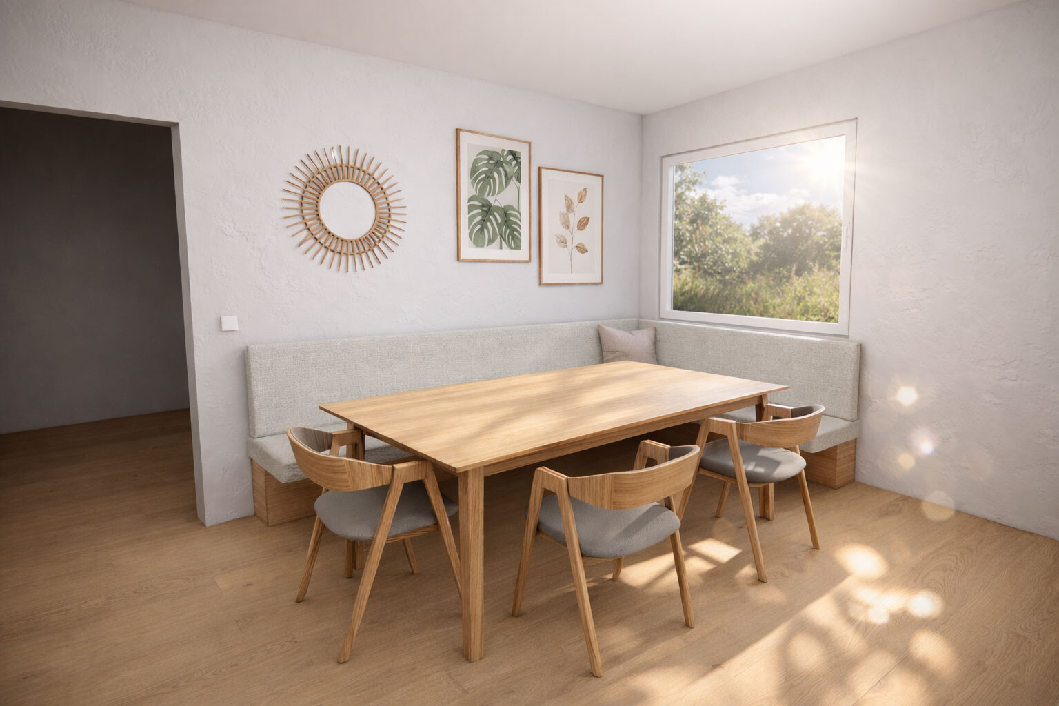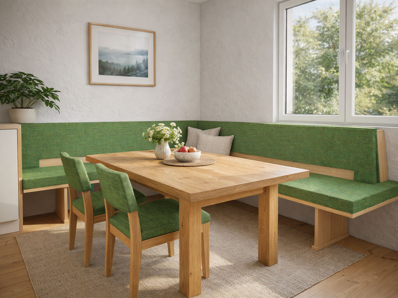 Auch der Einstieg in die Eckbank wird von uns optimal geplant. Wir sorgen dafür, dass ausreichend Bewegungsfreiheit besteht, damit das Hinsetzen und Aufstehen mühelos gelingt. Und bei der Auswahl des Holzes setzen wir auf langlebige Harthölzer wie Eiche oder Nussbaum, damit deine Eckbank robust und pflegeleicht bleibt – perfekt für den täglichen Einsatz.