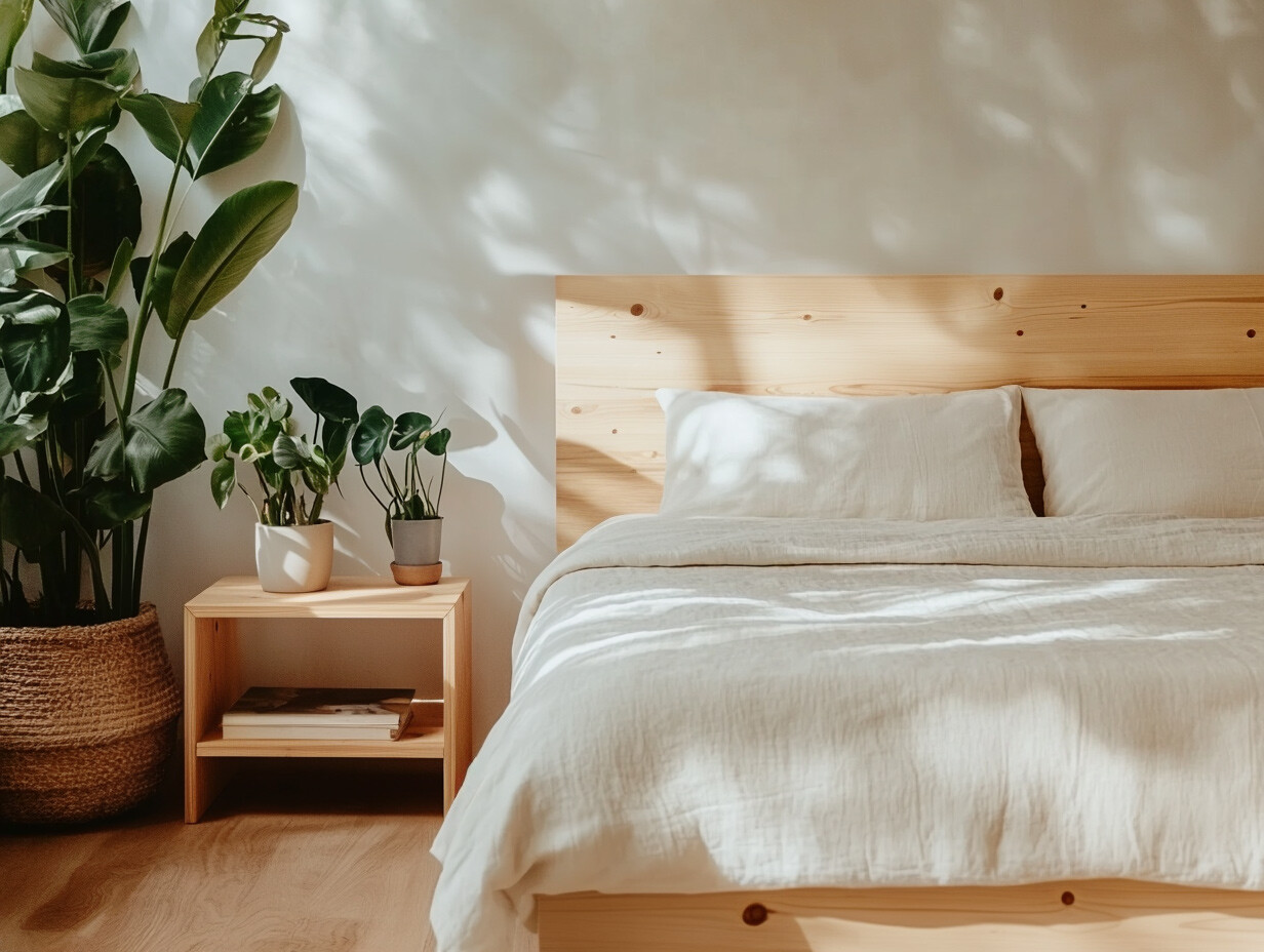 Die Wahl der Materialien hat großen Einfluss auf dein Schlafumfeld. Massivhölzer wie Eiche oder Zirbe sorgen nicht nur für eine warme Optik, sondern tragen auch zu einem gesunden Raumklima bei – ein Zirbenbett kann sogar deinen Schlaf positiv beeinflussen. Auch bei Stoffen für Bett und Accessoires lohnt sich ein Blick auf natürliche Materialien wie Baumwolle oder Leinen. Gemeinsam planen wir Möbel und Details, die deinem Schlafzimmer die perfekte Balance aus Komfort und Natürlichkeit verleihen.